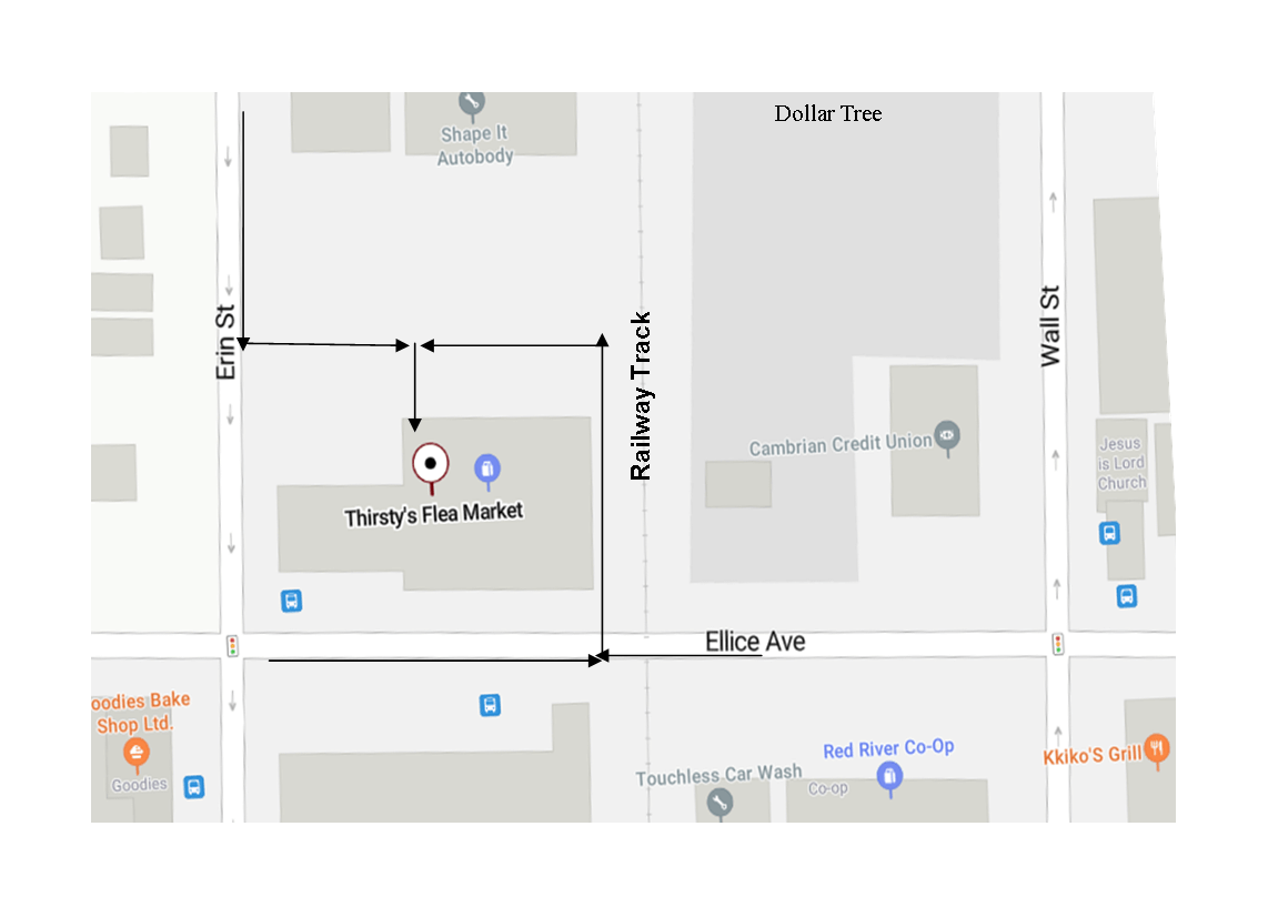We are at 1111 Ellice Avenue, at the back of the building.Entrance under the red canopy